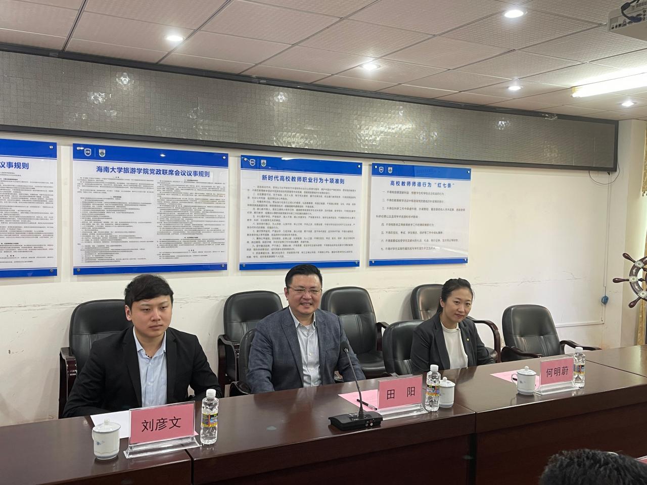 郭强经理对田阳副总裁一行的到访表示热烈欢迎,对旅游公司的人才培养、科研、社会服务情况做了介绍,表示希望未来双方可在人才培养、员工就业等方面加强交流合作,并强调以需求为牵引,利用好人才储备,把人才培养与国家、社会发展紧密结合起来,充分发挥双方之所长,为海南省经济建设和社会进步作贡献,为高质量高标准建设海南自由贸易港提供支撑。