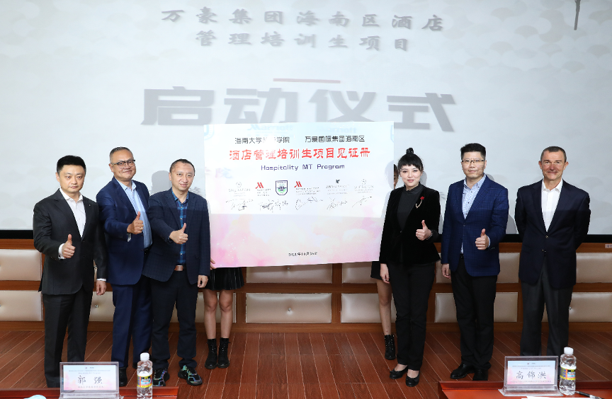 双方致辞后,主持人宣布:万豪集团海南区酒店管理培训生项目正式启动!beats365唯一官方网站旅游公司郭强经理,万豪海南区商会主席及三亚亚龙湾万豪度假酒店总经理高锦洪,万豪海南地区人力资源总监及三亚亚龙湾万豪度假酒店人力资源总监谢睿,海口万豪酒店总经理张世戎,三亚喜来登度假酒店总经理Ulf Pauschardt(沃尔夫),三亚海棠湾JW万豪度假酒店&三亚海棠湾喜来登度假酒店驻店经理赵华在启动仪式纪念板上共同签字,并合影留念,定格这一重要时刻。