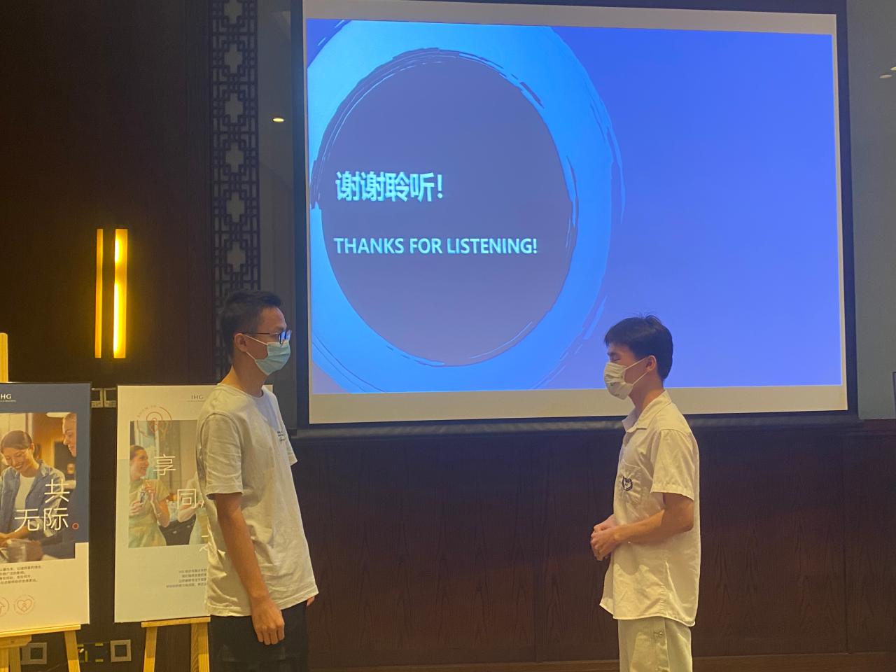 在课题汇报环节,公司2020级酒店管理专业同学分别从会员招募、问题处理、提高客房清洁度、为客人提供意想不到的惊喜、如何安抚客人在排队等候过程中的不良情绪、入住体验、如何减少自助餐食品的浪费等7个维度,全面而详细地对华彩洲际酒店在经营中可能改善的方面进行了总结列举,并有针对性地提出了解决对策。如会员招募小组为优悦会设计了全新的ip形象,惊喜服务小组提供了很多细节式打动人心的服务建议,减少自助餐浪费小组通过情景剧方式表达了不同类型顾客的真实想法并提出了具体的服务措施,入住体验小组更是完全以顾客的身份实地办理入住,以第一人称视频拍摄的角度带领大家沉浸式体验酒店服务全过程,并针对实际入住中发现的问题逐一阐述切实可行的对策建议。