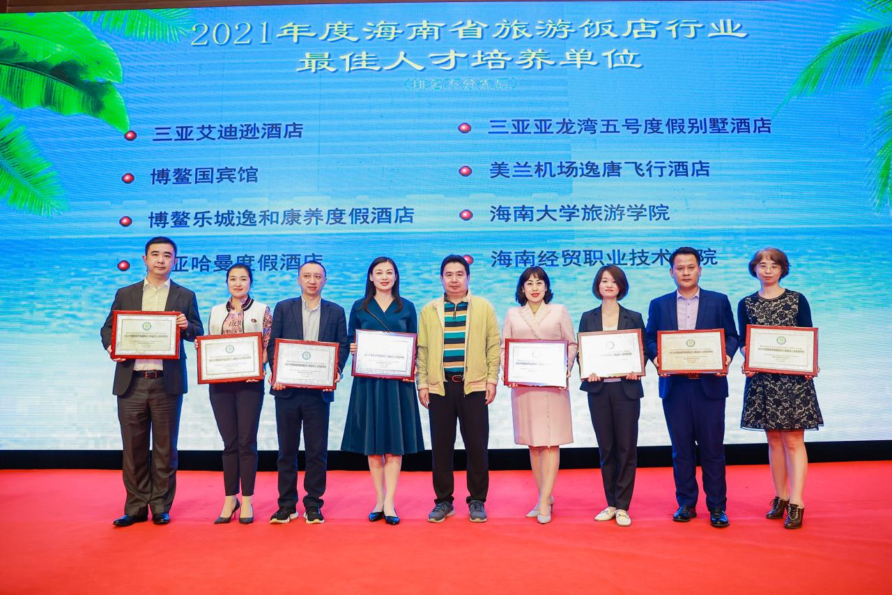 近日,经组委会及专家评审团的权威评定,公司与三亚艾迪逊酒店、三亚亚龙湾五号度假别墅酒店、博鳌国宾馆、美兰机场逸唐飞行酒店等国内知名单位一道入选“2021年度海南省旅游饭店行业最佳人才培养单位”奖项,公司今后将再接再厉,不断完善和加强对旅游人才的培养,切实发挥好典型引领和示范标杆作用,为打造高水平国际化服务产业作出贡献。