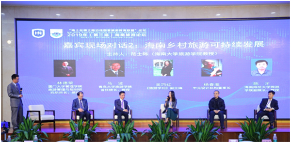 在嘉宾现场对话环节,共设立了“海南滨海与岛屿旅游发展”和“海南乡村旅游可持续发展”两个对话主题。