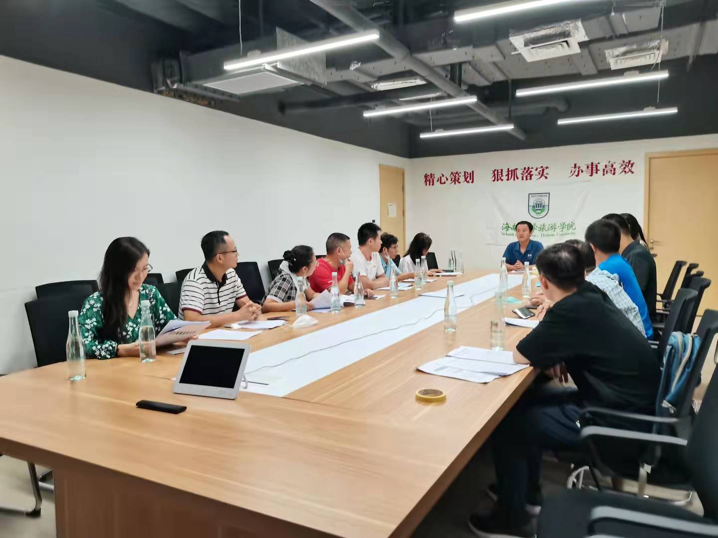 随后,旅游管理系在系主任侯佩旭副教授的主持下召开了旅游管理本科专业建设交流会。旅游管理系教师就旅游管理国家一流本科专业建设及评估验收、旅游管理本科专业UNWTO专业认证、一流课程及教学团队建设、教学教改及实验室建设立项等议题展开了充分交流和深入讨论。会议在热烈的气氛中进行,老师们结合时代背景、行业需求、院系实际等方面纷纷发表了自己的见解、提出了中肯的建议。通过交流讨论达成了一系列共识,为建设发展好旅游管理系奠定良好基础和有力保障。