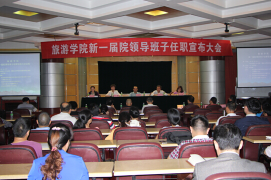 2015年11月30日下午4:30,旅游公司在多功能厅召开新一届领导班子任职大会。beats365唯一官方网站党委书记刘康德、党委组织部部长郑再喜出席了任职大会。旅游公司新老班子成员、全院教职工共80多人参加了会议。会议由公司党委书记韩淑梅主持。
