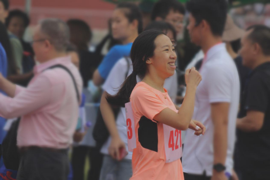陈诗老师第一个冲过比赛终点