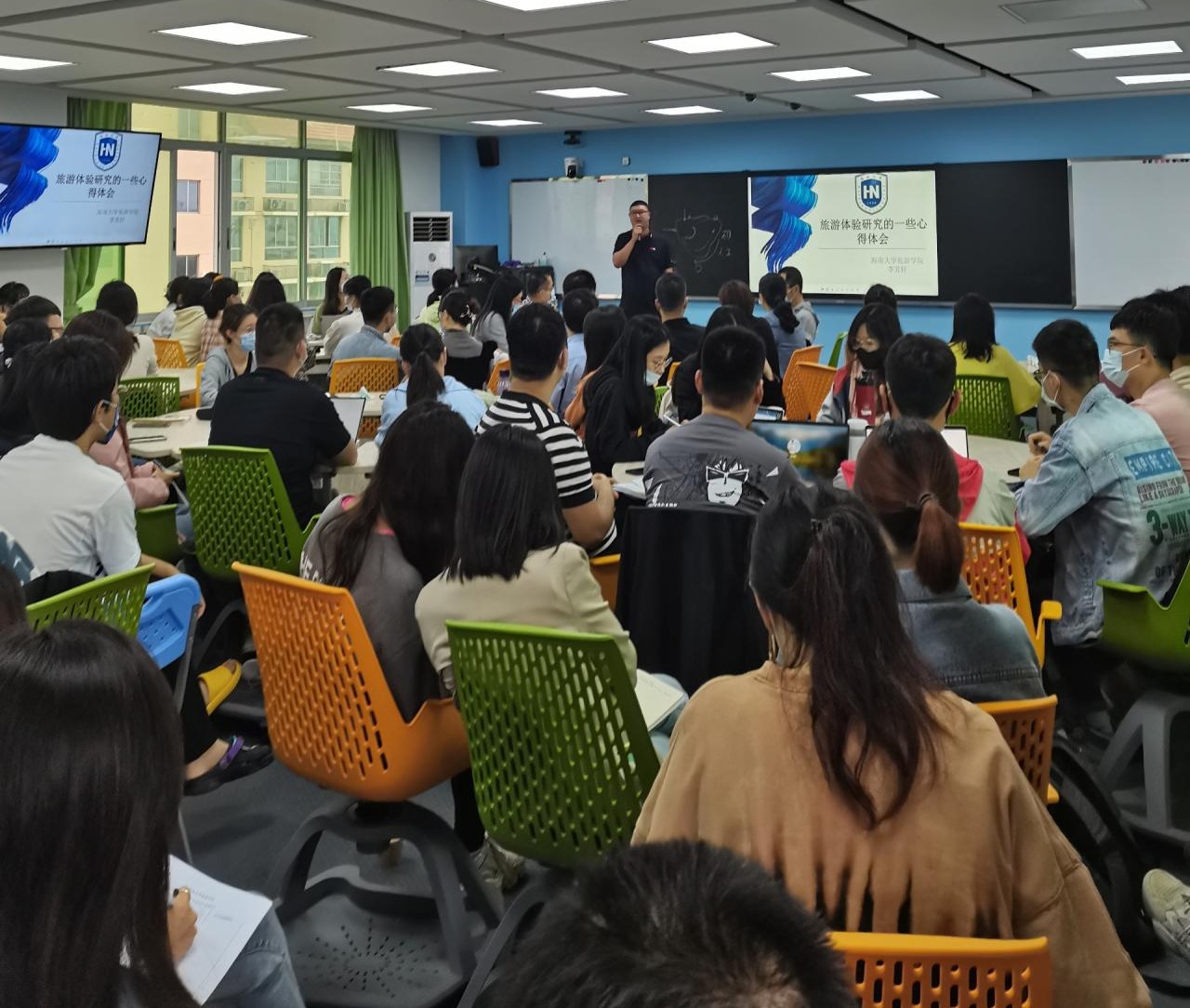 2022年4月19日下午,公司第19期文旅融合与自贸港建设大讲堂在8教502继续开讲。此次讲座嘉宾是我李芳轩教授,他为公司师生做了题为“旅游体验研究的一些心得体会”的精彩学术报告