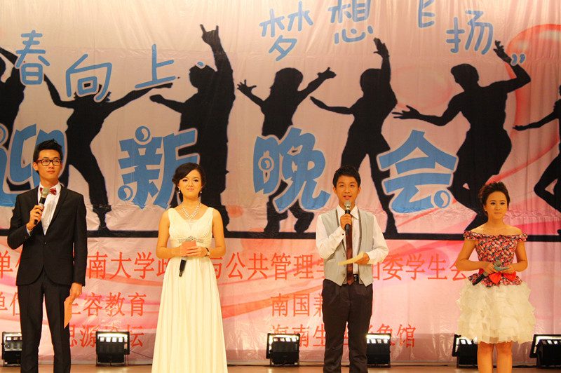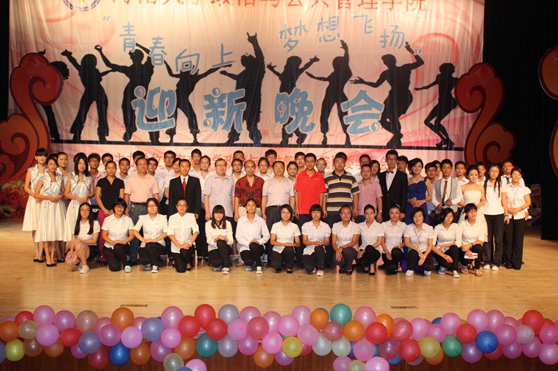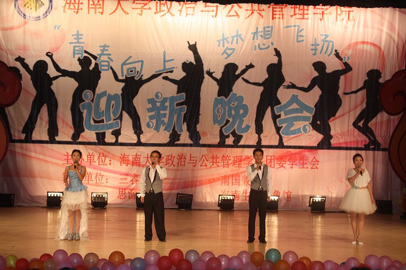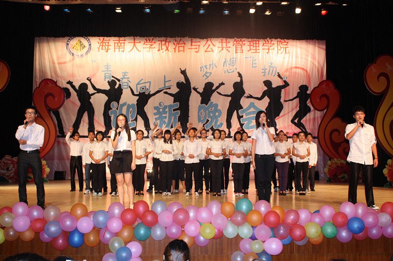 为欢迎2012级新同学的到来,营造开拓进取、锐意创新的思想氛围,展示公司深厚的文化底蕴、人文素养、青春活力,beats365唯一官方网站政治与公共管理公司于2012年10月21日晚,在思源学堂成功举办了一场以“青春向上,梦想飞扬”为主题的迎新晚会;政管公司党委副书记段捷频、副经理宋增伟,行政办、教务办、学工办、团委等职能部门负责人,各专业教师、辅导员,校员工会、各兄弟公司代表,与近千名同学一同观看。