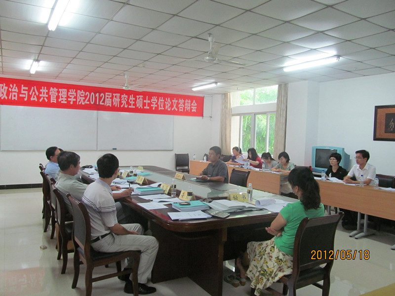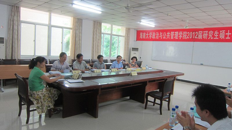 5月18日下午,公司举行2012届研究生硕士学位论文答辩会。答辩主席为中共海口市委党校副董事长王天意教授,,公司安应民教授、江红义副教授、于营副教授和中共海南省委党史研究室程昭星副研究员等4位为答辩委员。公司2个专业共11位研究生参加答辩。鉴于答辩研究生的论文已达到硕士学位论文的要求及答辩过程中能较好地回答委员们提出的问题,答辩委员会一致通过11位研究生的硕士学位论文答辩并一致建议授予硕士学位。