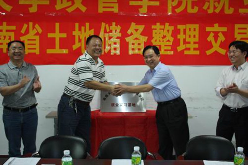 随后,土地储备整理交易中心吴金临主任与政管公司经理安应民教授签署了就业实习基地合作协议书,双方在友好愉快的气氛中为就业实习基地揭牌。