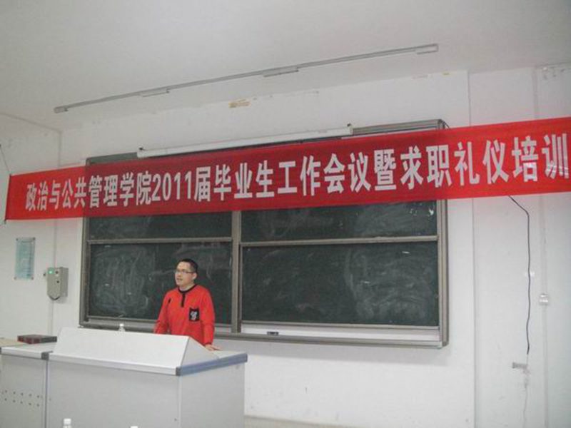 11月25日晚,政治与公共管理公司2011届毕业生工作会议暨求职礼仪培训在3-310成功召开。公司党委段捷频副书记出席了会议,公关系王芳副教授、学工办邢红斌主任、教务处丛德生副主任及广大毕业生参加了会议。会议由院综合办副主任、院就业工作负责人颜洪平主持。