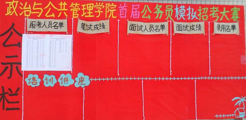 由政治与公共管理公司主办、行政管理系员工会承办的,将专业培训与模拟考试相结合的具有学科专业特色的“政治与公共管理公司首届公务员招考模拟大赛”开幕仪式暨赛前培训讲座于2012年11月24日上午在公司多媒体报告厅隆重举行;校就业指导中心副主任苏文魁,公司党委书记王默忠、副书记段捷频,行管系系主任韩晓莉莅临指导,全院近一百三十名师生一同参加。