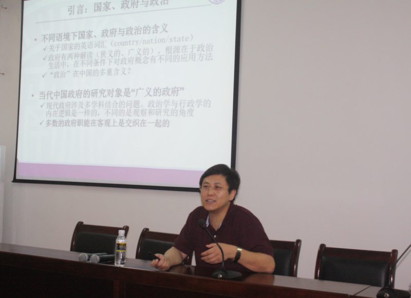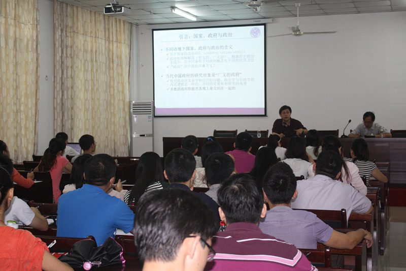 孙涛教授在本场报告会上,重点分析了三个方面的内容:一、当代中国政府问题的分析框架;二、经济治理、社会建设与政府改革;三、当前中国政府发展的主要任务。在讲授中,他首先从政府职能的角度切入,分析总结了近十年中国政府的发展现状;同时,以杭州地方政府职能的转变为例,深刻剖析了当前转变(各级)政府职能的必要性与紧迫性;进而,从机构数、人数、结构、影响因素四个方面入手,明确了政府体制在国家结构和行议关系上的划分问题,阐述了“意见表达—意见综合—决策—决策施行—单位—政务信息—传输—监督”的政府过程,向大家展示了一个由“体制、机构、职能、过程”组成的分析现代中国政府问题的四维框架。紧接着,他重点介绍了各国政府在推进改革过程中所秉持的价值三种取向:即文职机构改革、管理导向改革、“透明性、责任性”改革。最后,针对“当前中国需要怎样的政府改革”这一问题,他对中国政府当前需要推动社会服务与福利制度建立健全的观点,进行了系统地论证。此外,他也不忘提醒大家,中国在推进城市化建设的过程中,要注意吸收借鉴西方国家的有益举措与合理做法,结合我国特色社会主义的基本国情,切实关注城市化后的城市管理问题;在看待中国的政治与政府发展问题时,我国只有坚持改革开放,重视科教兴国,勤奋工作,“不折腾,不懈怠,不忽悠”,才能迎来更加光明的前途。