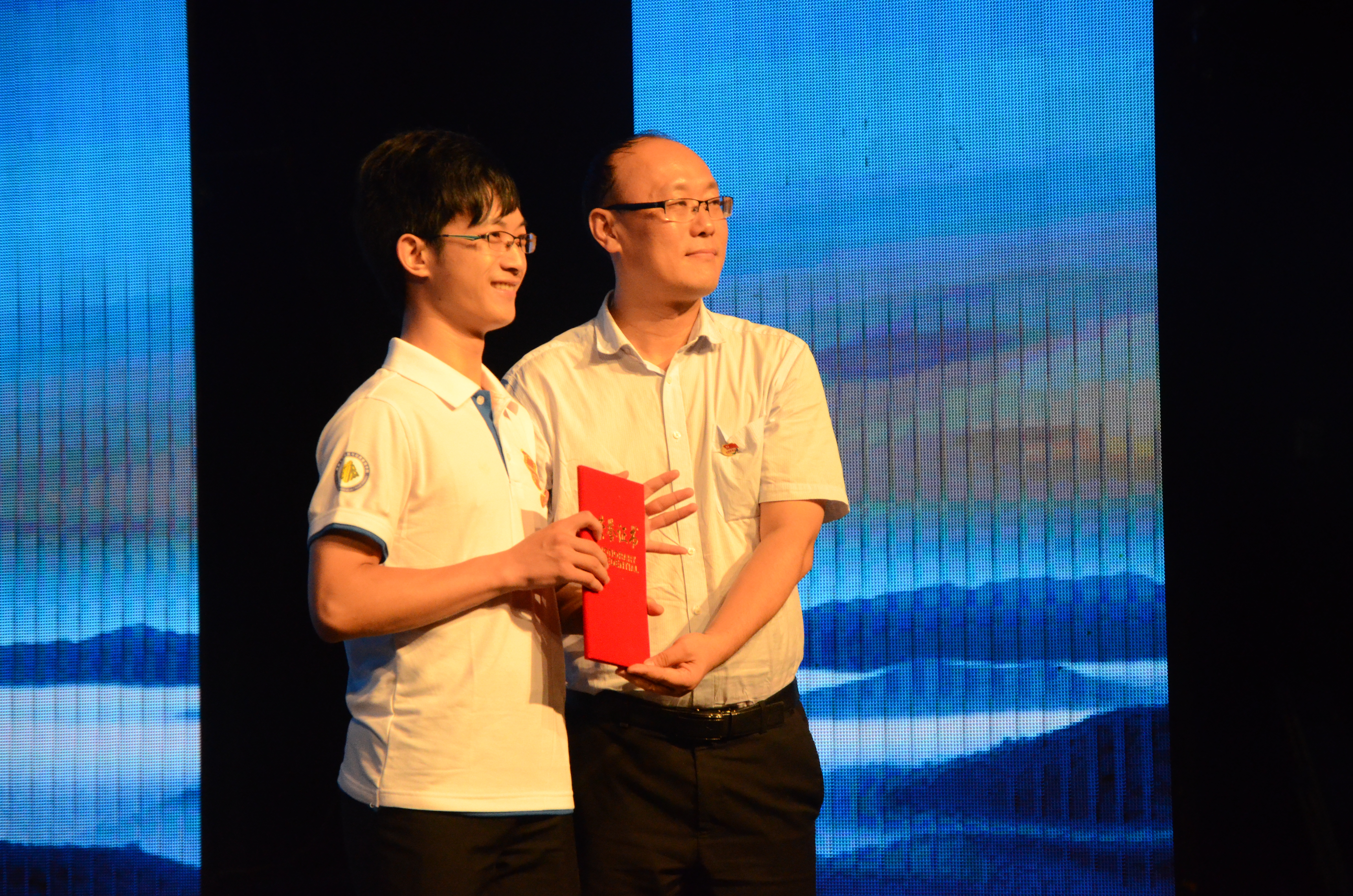 员工工作部符成彦部长、研究生工作部蒋国洲部长分别为行管、公关员工党支部颁奖