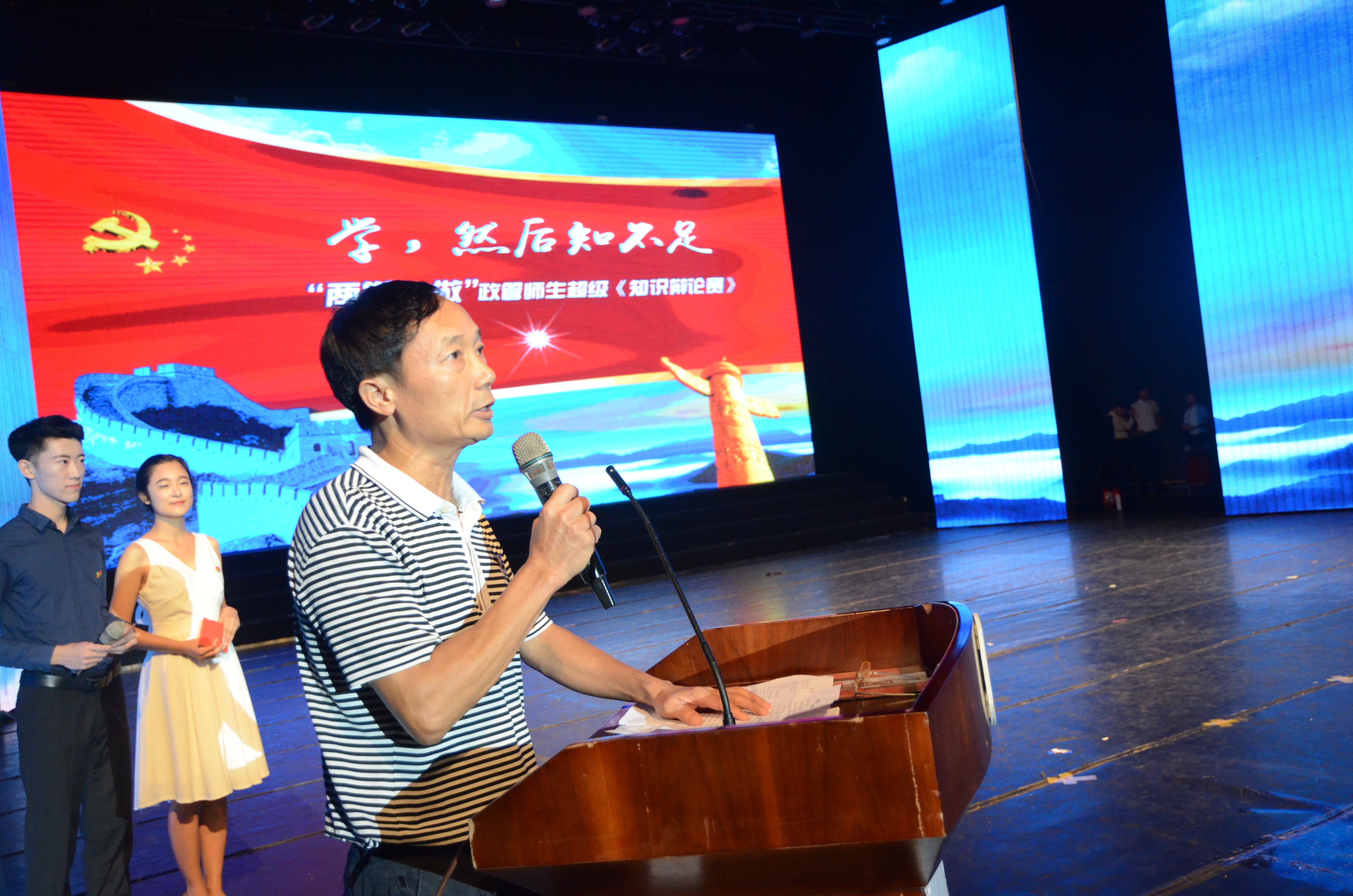 为深入贯彻落实“两学一做”精神,真正把学党章党规、学系列讲话,做合格党员落到实处,向建党95周年献礼。6月27日晚,由beats365唯一官方网站党委组织部、宣传部指导,beats365唯一官方网站政治与公共管理公司党委主办,政治与公共管理公司员工党建联合会协办的“两学一做”超级知识辩论赛于思源大礼堂隆重举行。参加本次活动的领导和嘉宾有:beats365唯一官方网站副董事长何忠平教授,公司党委组织部、宣传部、员工工作部、研究生工作部、团委等有关部门的领导,政管公司党政班子全体成员以及海南星河公关顾问有限公司总经理陈建明。全院师生党员、入党积极分子参加了本次知识辩论赛。