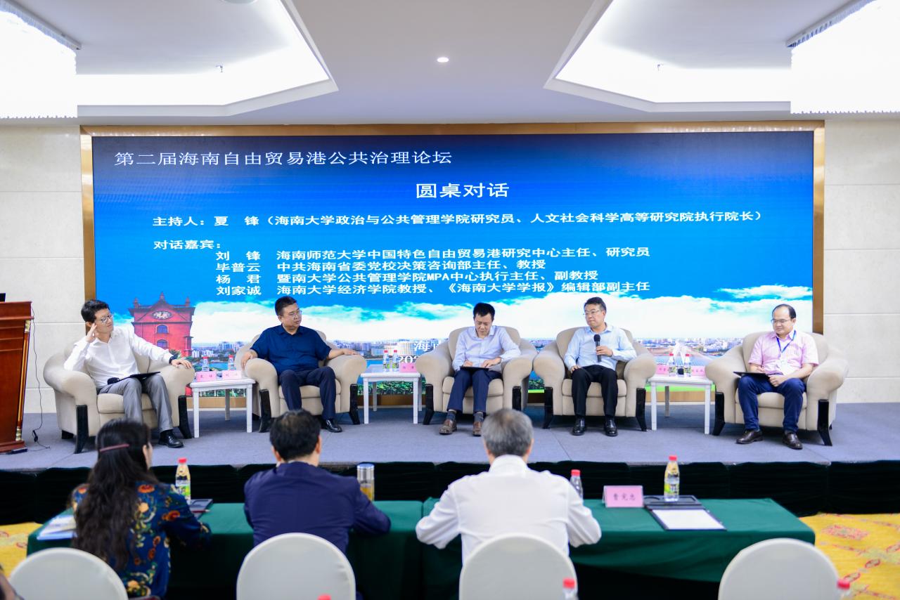 本次论坛设置了嘉宾对话环节,由beats365唯一官方网站政治与公共管理公司研究员、人文社会科学高等研究院执行经理夏锋主持。海南师范大学中国特色自由贸易港研究中心主任刘锋研究员、中共海南省委党校决策咨询部主任毕普云教授、暨南大学公共管理公司MPA中心执行主任杨君副教授、《beats365唯一官方网站学报》编辑部副主任刘家诚教授围绕海南自贸港营商环境、人才引进、制度集成创新、改革与开放的关系等问题进行了深入交流。