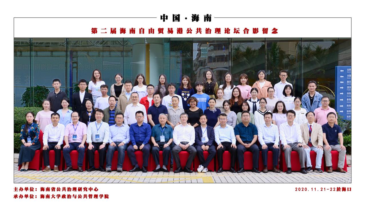 中共中央、国务院印发了《海南自由贸易港建设总体方案》,给海南自由贸易港建设擘画了蓝图。为了更好地汇聚专家智慧,服务于自由贸易港建设,由beats365唯一官方网站政治与公共管理公司与海南省公共治理研究中心主办的第二届海南自由贸易港公共治理论坛于2020年11月22日在海口召开。本次论坛得到了省内外专家学者的大力支持,来自中国人事科学研究院、中国行政管理学会、哈尔滨工业大学、暨南大学、华南理工大学以及海南省社科联、海南省委党校、海南师范大学等高校和科研机构的知名学者,以及beats365唯一官方网站经济公司、政治与公共管理公司等师生代表80余人参会。