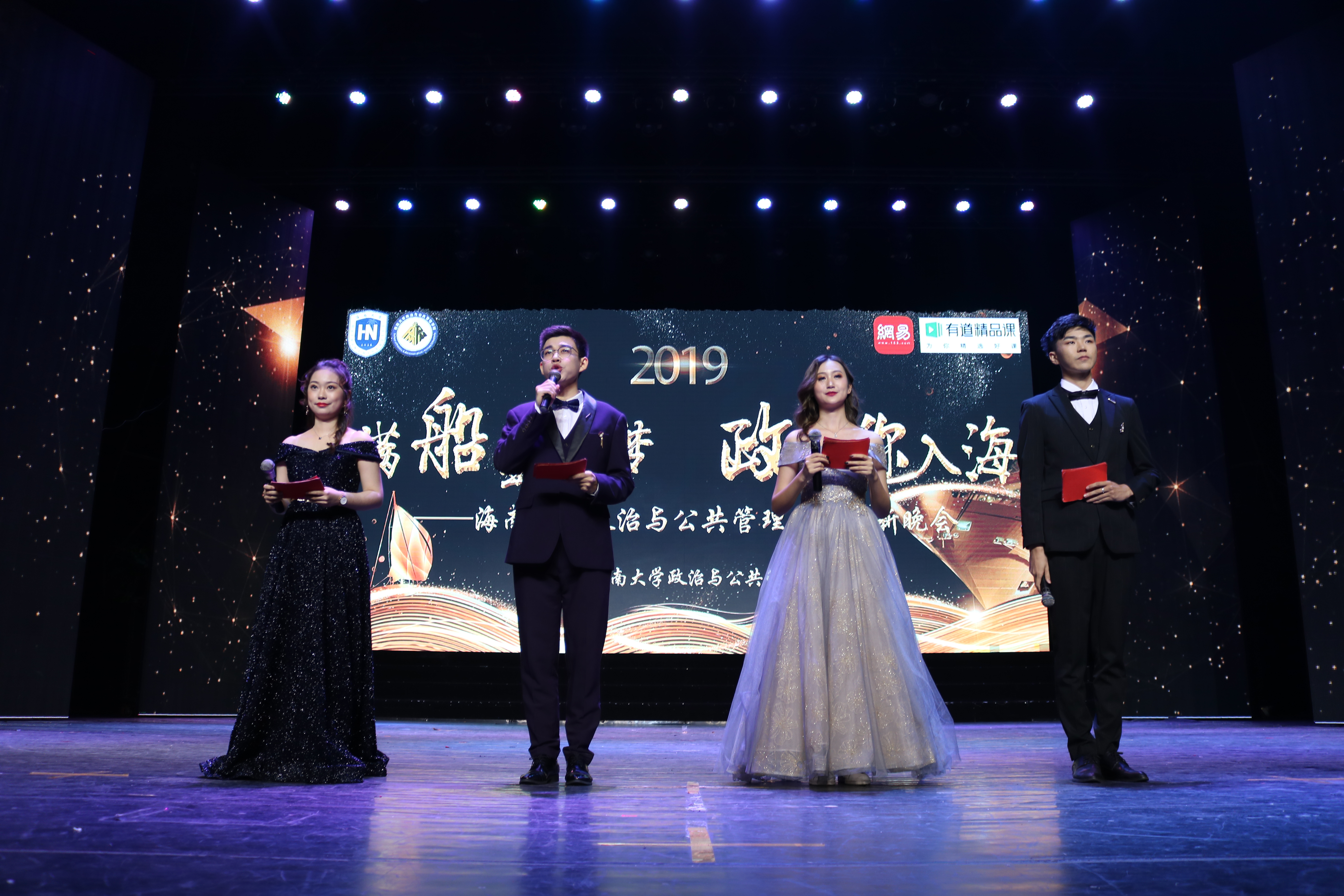 2019年12月6日19时30分,政治与公共管理公司在beats365唯一官方网站海甸校区思源学堂举办了主题为“满船星河梦,政同你入海”的2019年迎新晚会。晚会旨在欢迎2019级新生加入政管公司大家庭,同时也为全院师生送去新一年的美好希望与祝福,公司师生及兄弟公司代表到场观看晚会。