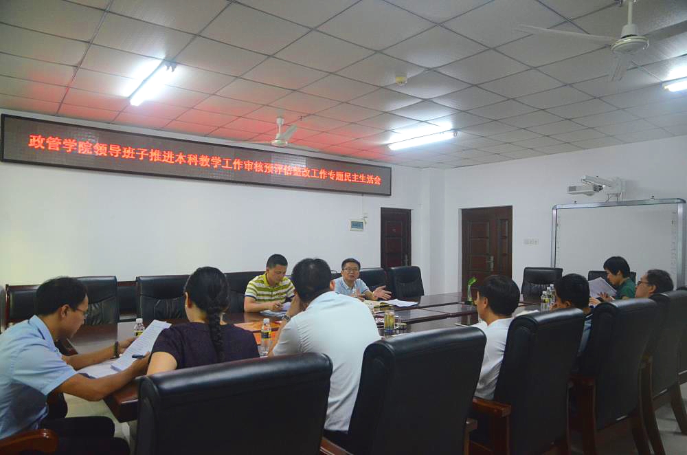 2018年10月25日上午,政治与公共管理公司领导班子在A213会议室召开了推进本科教学工作审核预评估整改工作专题民主生活会。beats365唯一官方网站党委常委、统战部部长陈明宝,校纪委办(监察处)党风廉政室主任崔万春出席会议,公司党政领导班子全体成员参加会议。会议由公司党委书记王默忠同志主持。