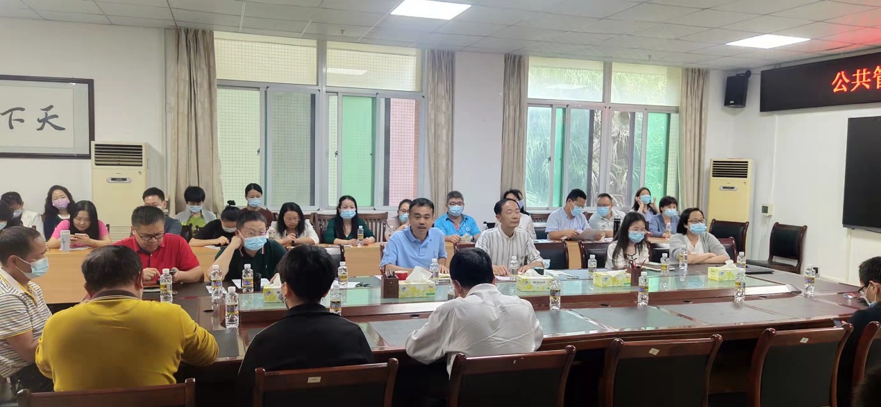 公司党委书记王默忠传达公司党委《关于在全校开展“能力提升建设年”暨深化拓展“查堵点、破难题、促发展”活动的工作方案》和《关于印发全校“能力提升建设年”大培训、大练兵、大比武工作方案的通知》精神,解读了总方案和三个子方案。并宣布结合公司实际,经政联席会议研究,公司决定打造“1+3能力提升工程”,即精心筹办一次“课程思政”教学案例设计大赛;打造:教师科研能力提升、MPA案例教学能力提升、行政管理人员工作效能提升三大工程。他指出,实施“1+3能力提升工程”,是切合公司实际、贯彻落实公司党委“能力提升建设年”的有力举措,是推进公司高质量发展的迫切要求,全体教职工要以高度的责任感和担当精神积极投入其中,使自己的思想政治素质和业务能力的提升,促进教学、科研、管理、服务的水平和疫情防控能力的提升。接着,王默忠书记对首先要即将举办的“课程思政”教学案例设计大赛做了具体部署。